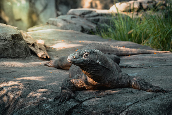 اژدهای کومودو، نماد جزیرهی کومودو و بزرگترین مارمولک جهان است. این خزندهی غولپیکر میتواند تا ۳ متر طول و بیش از ۷۰ کیلوگرم وزن داشته باشد. بدن عضلانی، نیش سمی و قدرت شکار بالا، از ویژگیهای بارز این گونه است. طعمههای اصلی آن شامل آهو، گراز وحشی و گاومیش آبی میشوند.